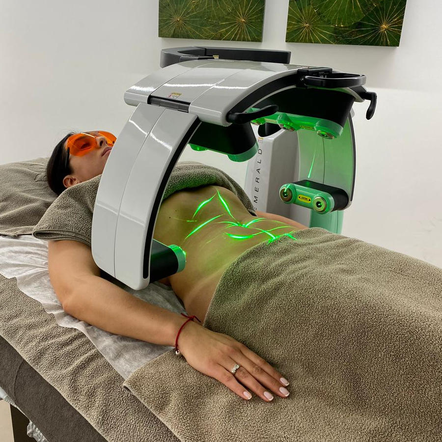 EMERALD™ 是⼀種⾮侵⼊性的低強度雷射,能將 532nm的綠光雷射經⽪照射,作⽤於脂肪細胞,並進⾏乳化脂肪,將多餘的脂肪物質釋放到細胞間隙中,並藉由淋巴系統⾃然代謝排出體外。